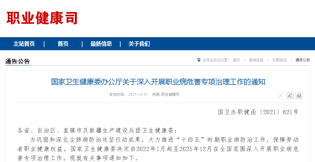 官方发布:关于深入开展职业病危害专项治理工作的通知及解读