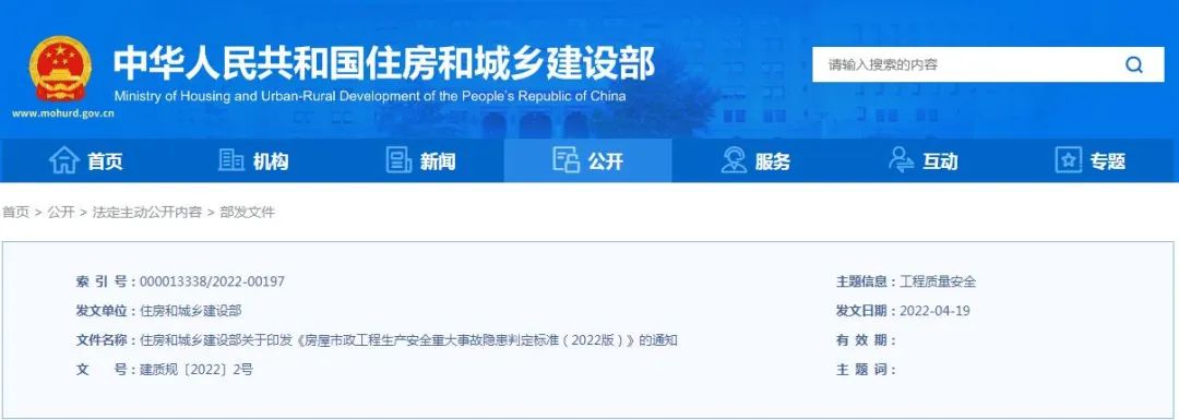 《房屋市政工程生产安全重大事故隐患判定标准(2022版)》发布