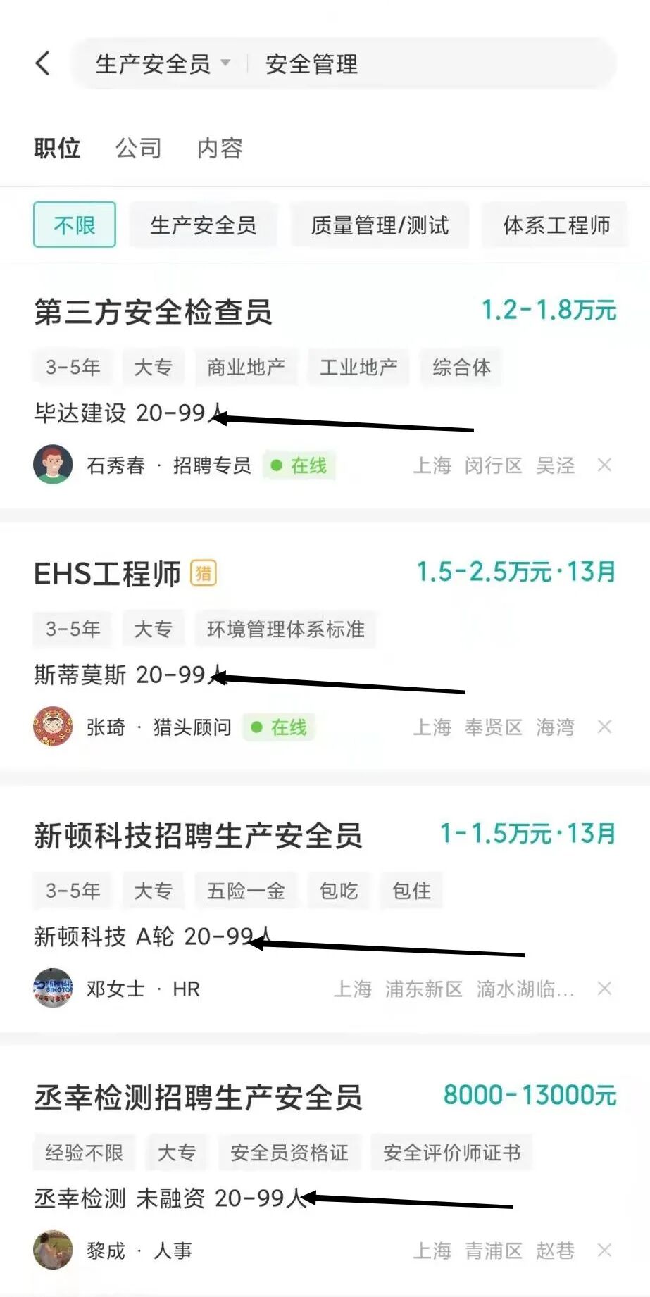 而那些中小型企业的安全管理人员基本上都是部门经理或者老员工兼职,很少对外招聘。